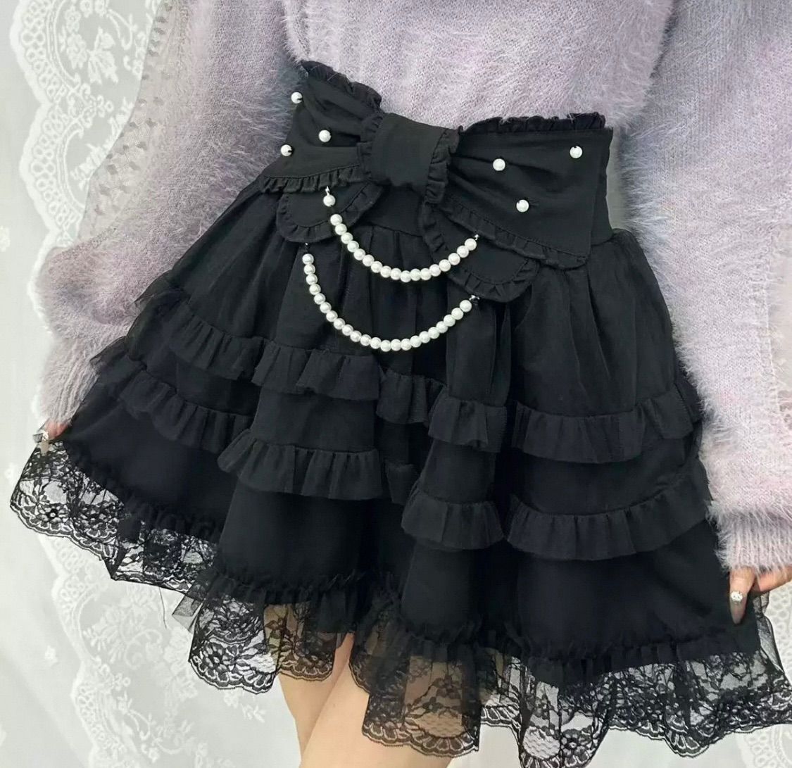 ? 天使系スカート ふんわりシルエット? リボン-パールアクセント? 展開?