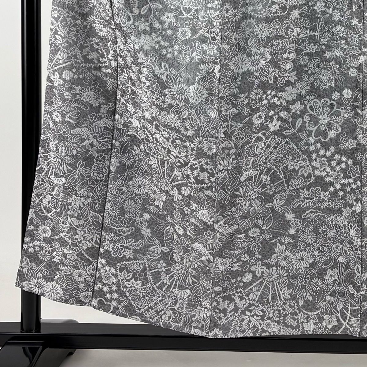 小紋 身丈155.5 cm 裄丈64 M 単衣 扇 草花 紋意匠 灰色 正絹