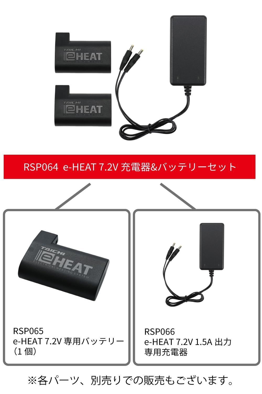 電熱 モバイルバッテリー接続 ヒーター 秋冬 防風 バイク 防寒 e-HEAT TAICHI 7.2 V充電器-バッテリーセット 3-5 TU RSタイチ RS RSP 064