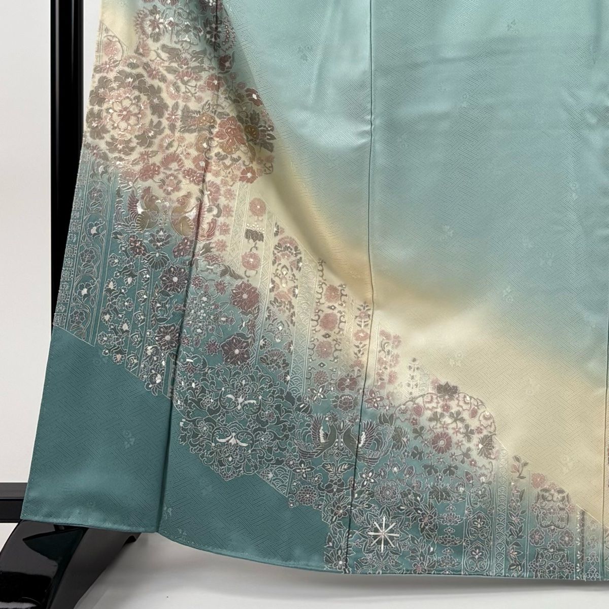 訪問着 身丈163 cm 裄丈64 M 袷 華文 向かい鳥 刺繍 ぼかし 薄緑 正絹 秀品
