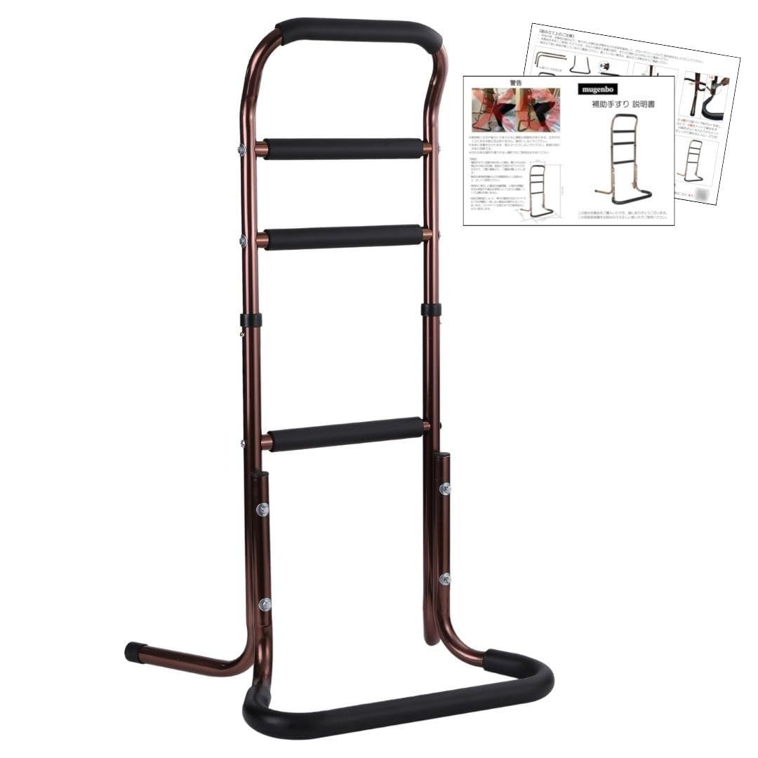 介護用手すり 【健康雑誌『安心』掲載 ! 作業療法士監修】 立ち上がり補助 補助手すり 簡単な組み立て 転倒防止 軽量 介護 4段階高さ調節 日本語説明書 mugenbo (ブラウン)