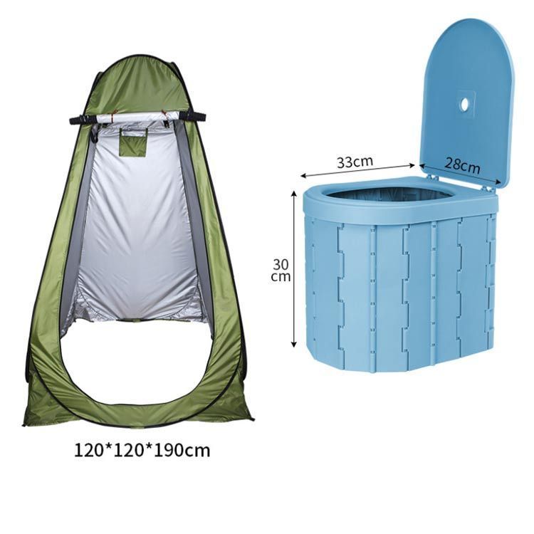 蓋付きポータブルトイレ+テント+12回分凝固剤+15個ゴミ袋+収納袋セット。