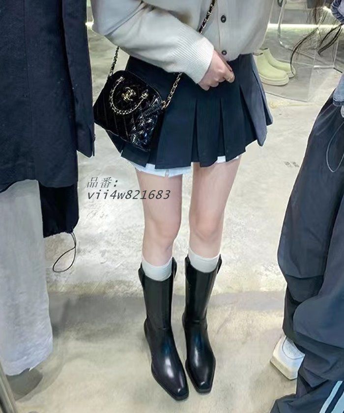 スクエアトゥ ブーツ ロング レディース 秋 冬 ヒール カジュアル きれいめ 韓国ファッション 高見え シンプル ポインテッドスクエアトゥミドルブーツ vii 4 w 821683
