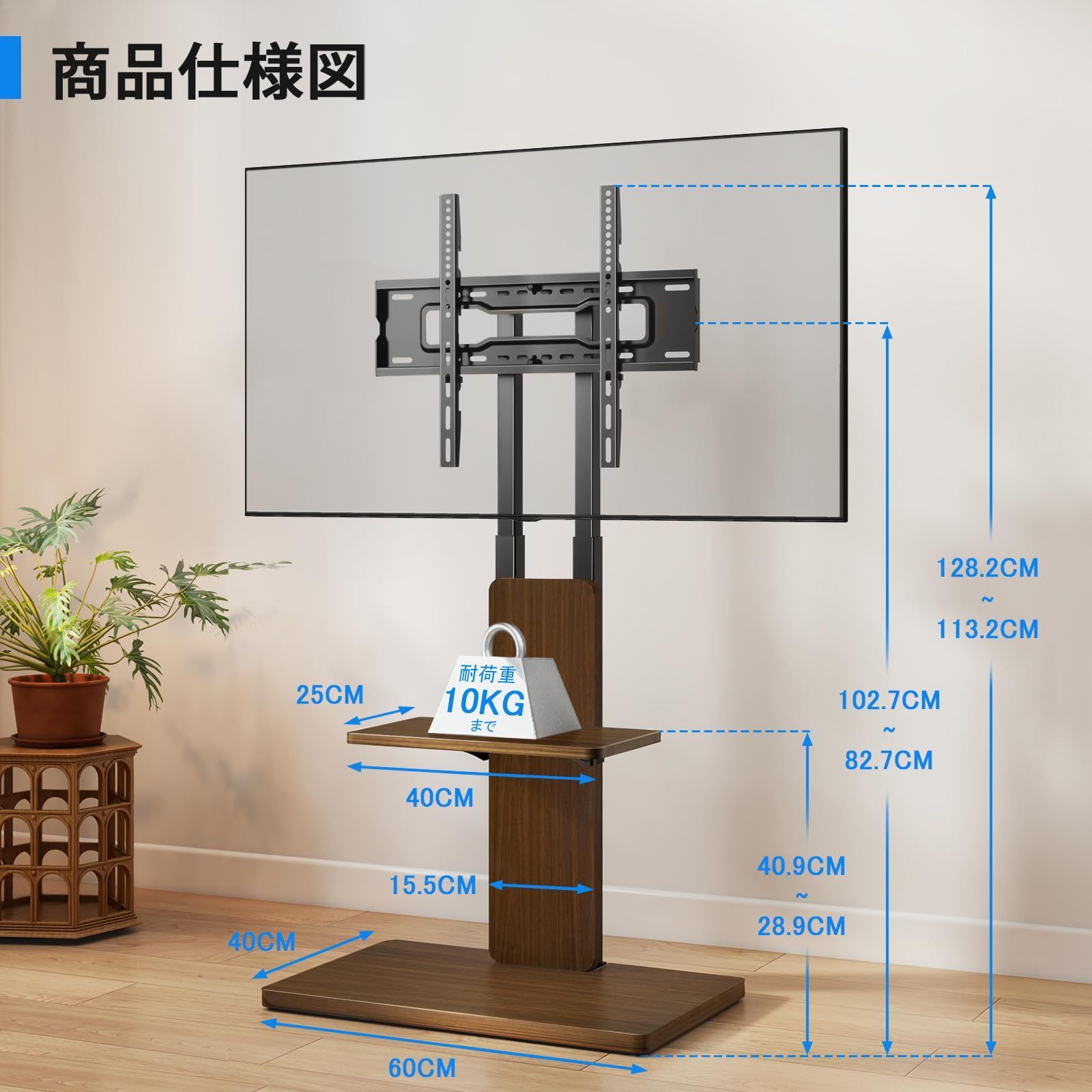 幅広いテレビに対応:テレビスタンドは、VESA規格(テレビ背面のネジ穴間の距離)10×10cm-40×40cm、32-70インチ、最大45kgまでのテレビやモニターに対応可能です。さまざまなブランドのテレビに適応し、互換性の高いテレビスタンド 壁寄せです。ご購入前に必ずお使いのテレビのサイズ、VESA、重量をご確認ください。