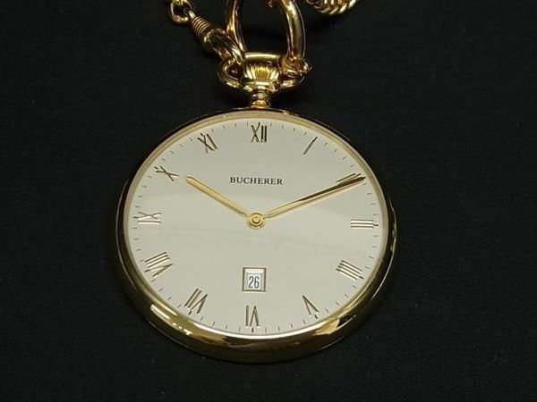 稼働品 ブッフェラー クォーツ 懐中時計 ウォッチ ネックレス ペンダント ゴールド系 DB 1520