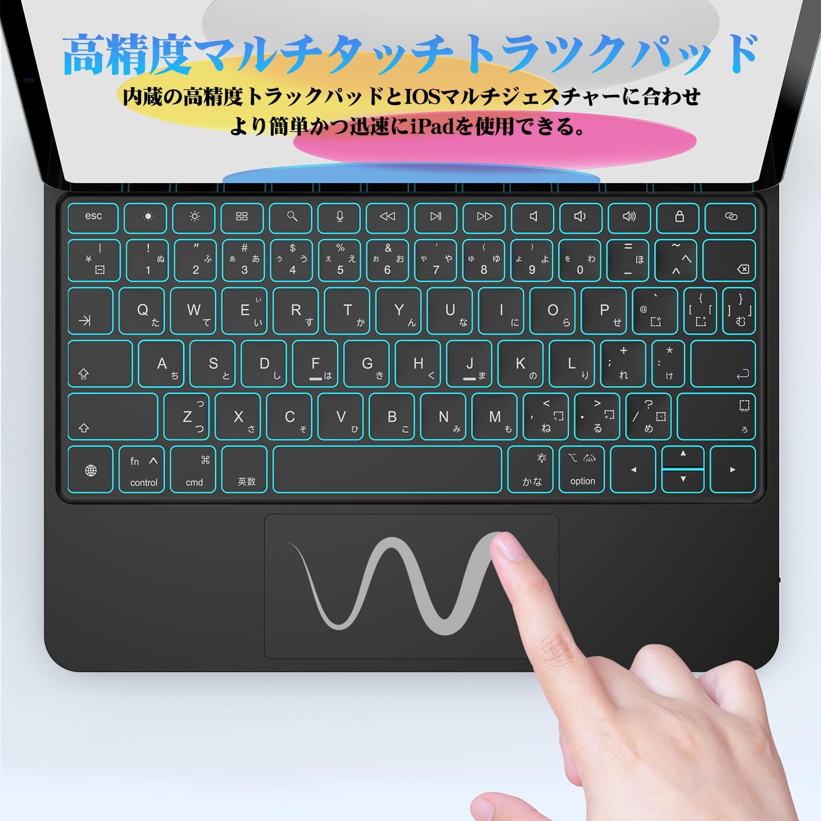 ????【マルチタッチトラックパッド】改良されたトラックパッドが遅延なし、ストレスなしにスムーズにiPadをすばやく操作できます。IOSマルチタッチジェスチャーに対応しているので、文書の編集、レポートの作成、ウェブの閲覧を圧倒的なスピードで行うことができできます。