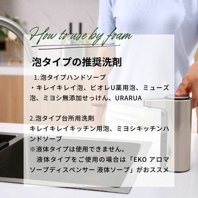 ※液体タイプは使用できませんので、液体タイプをご使用の場合は「EKO アロマソープディスペンサー 液体ソープ」をお買い求めください。