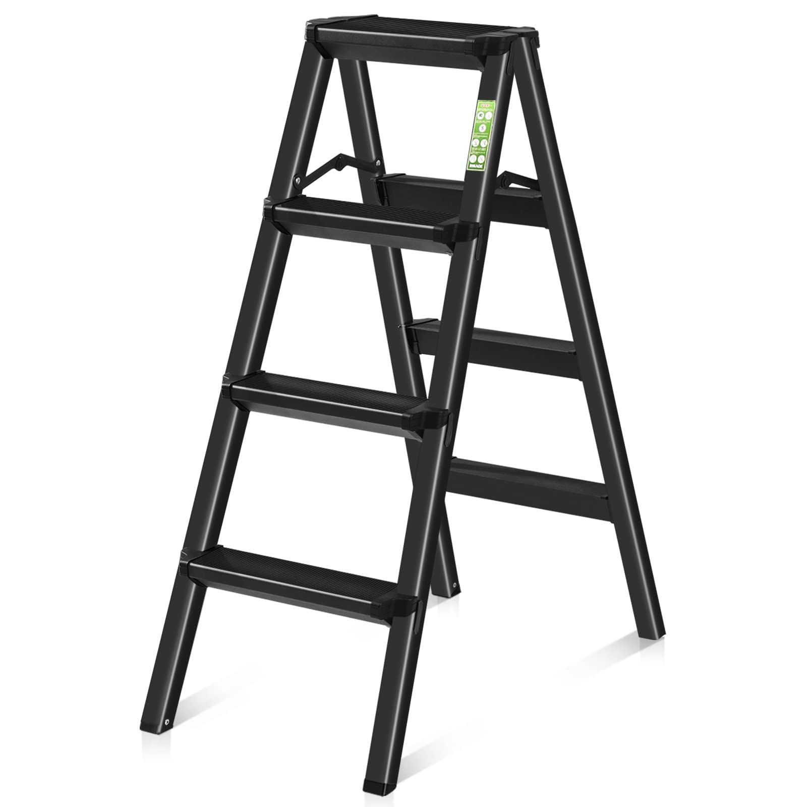 RIKADE 脚立4段 梯子 アルミ 折りたたみ ミニ 軽量 きゃたつ 踏み台 安全 耐荷重150KG 滑り止め付き ステップ台 (ブラック 四段)