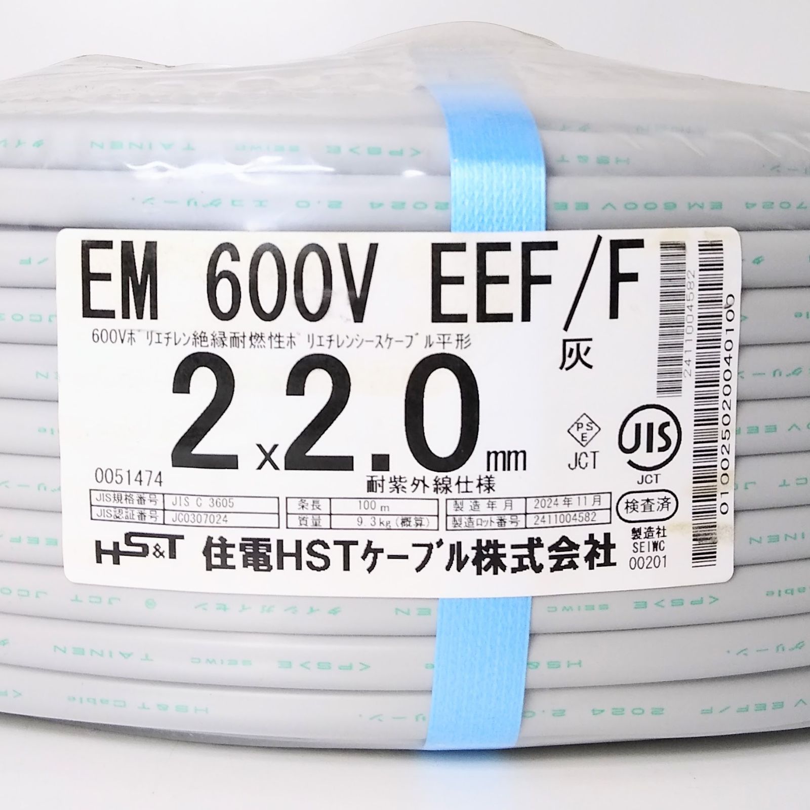 XH 220 E 住電HSTケーブル EM 600 V EEF F 2 0㎜ 灰 黒白 電線 建築資材 電気工事 ケーブル