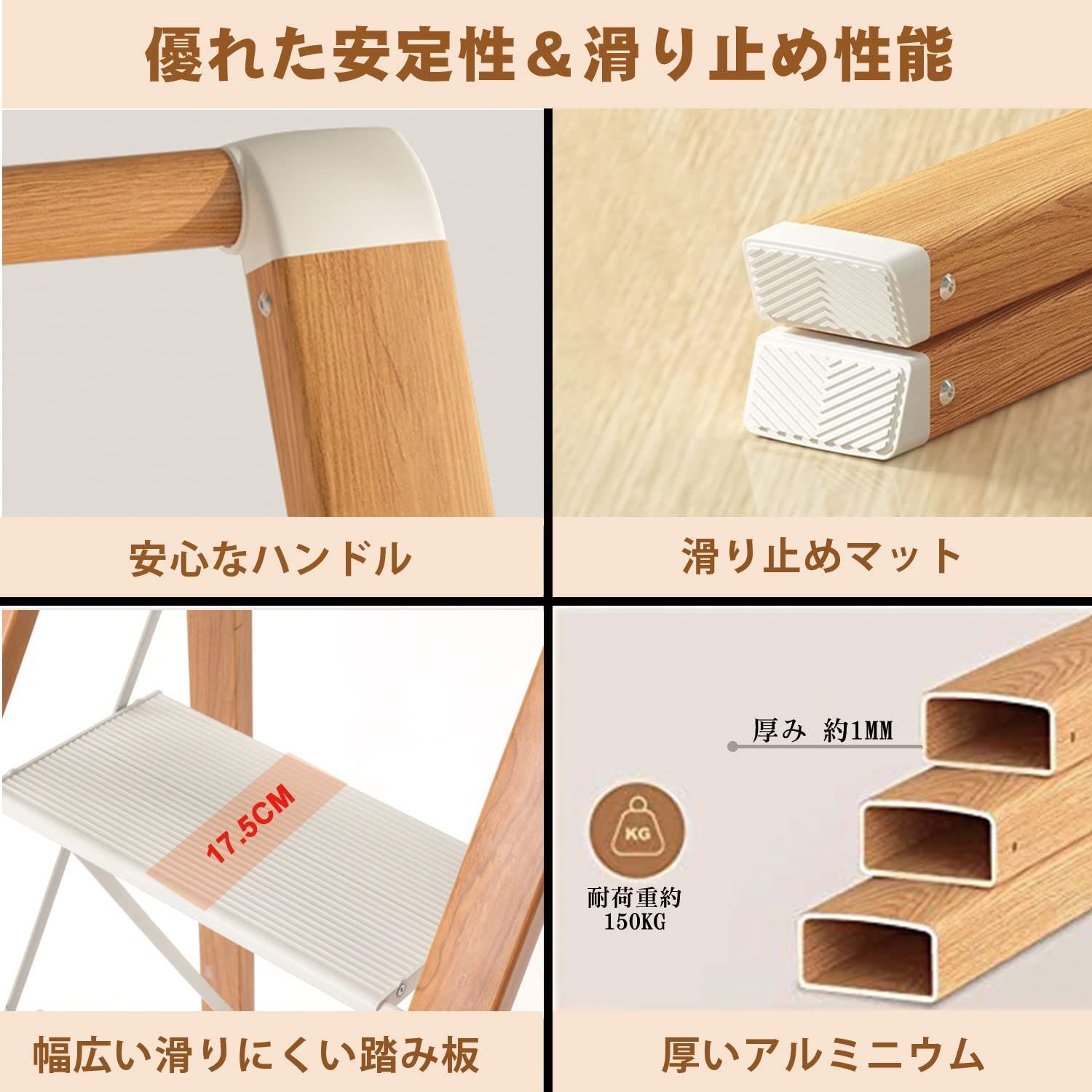 持ち運び コンパクト 掃除 洗車 4段 省スペース 屋外 室内 軽量 アルミステップ すき間収納 ステップスツール ステップ台 ハシゴ 滑り止め付 はしご 梯子 踏み台 アルミ脚立 木の色 取っ手付き 手すり 折りたたみ脚立 キャタツ おしゃれ き