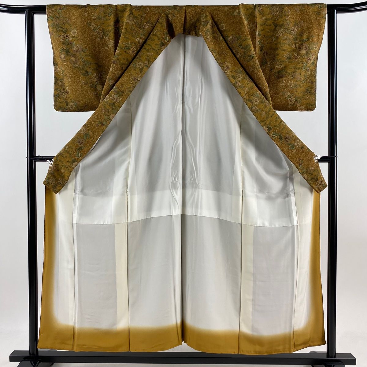 小紋 身丈155 cm 裄丈60.5 S 袷 草花 縮緬 茶色 正絹 秀品