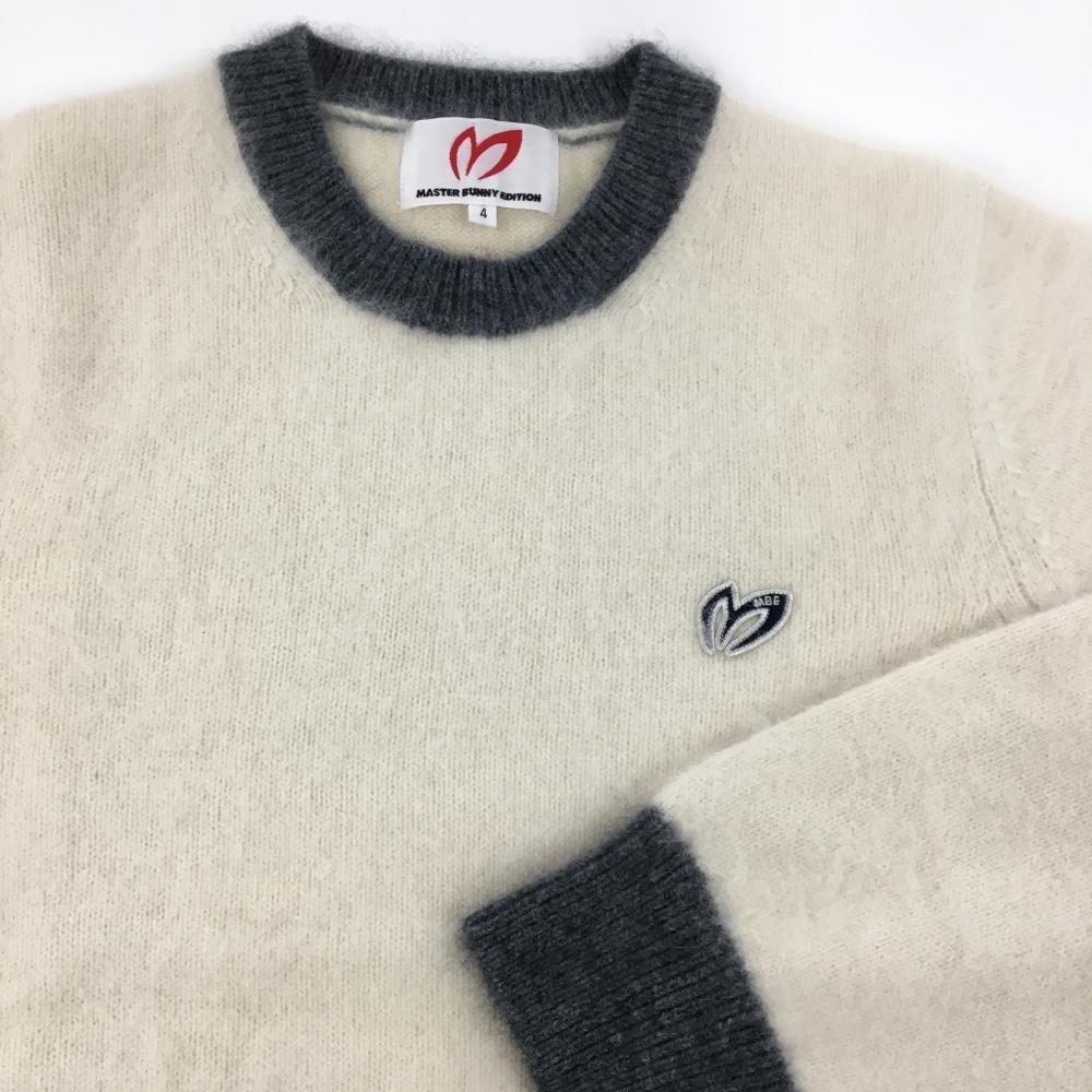 マスターバニー セーター 白×グレー ウール混 ニット メンズ 4 M ゴルフウェア MASTER BUNNY EDITION