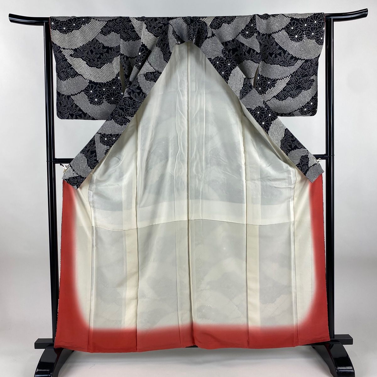 小紋 身丈161 cm 裄丈64 M 袷 菊 笹 総絞り 黒 正絹 秀品