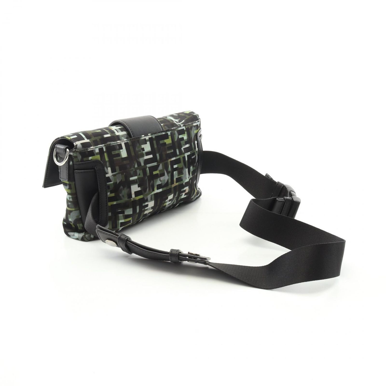 フェンディ FENDI ウエストバッグ マンマバケット ズッカ ブラック グリーン ナイロン レザー マンマバッケット メンズ B