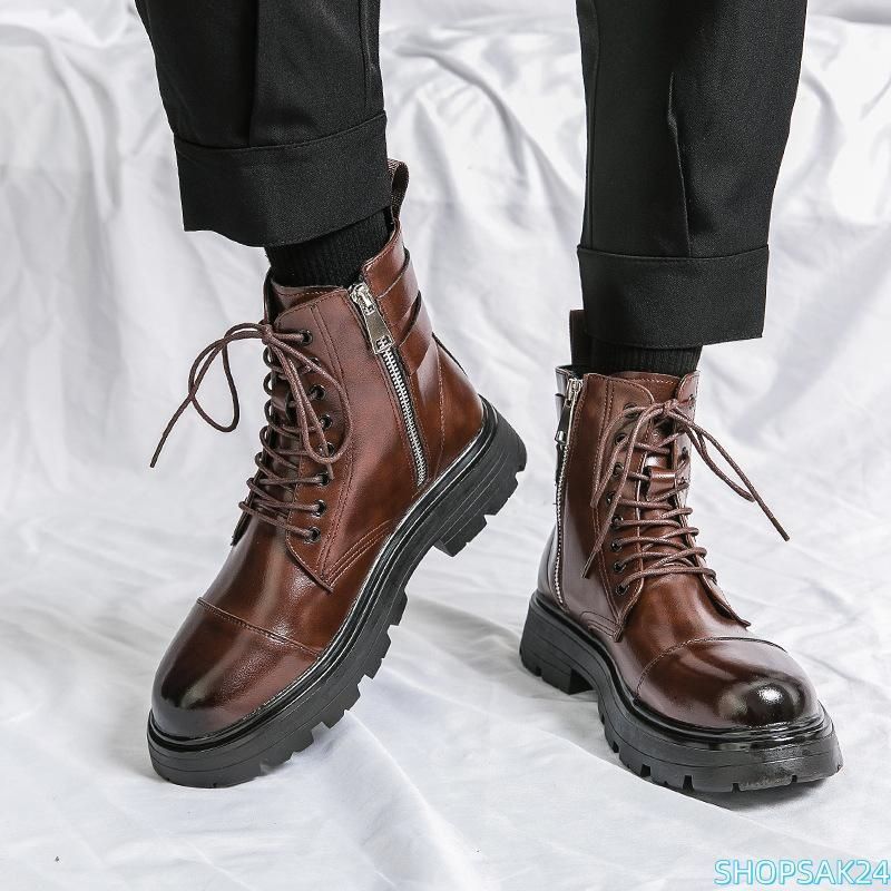 ショートブーツ メンズ ワークブーツ サイドジップ レースアップ ブーツ 厚底ブーツ 革靴 ミリタリーブーツ エンジニアブーツ 軽量 滑りにくい 防寒685