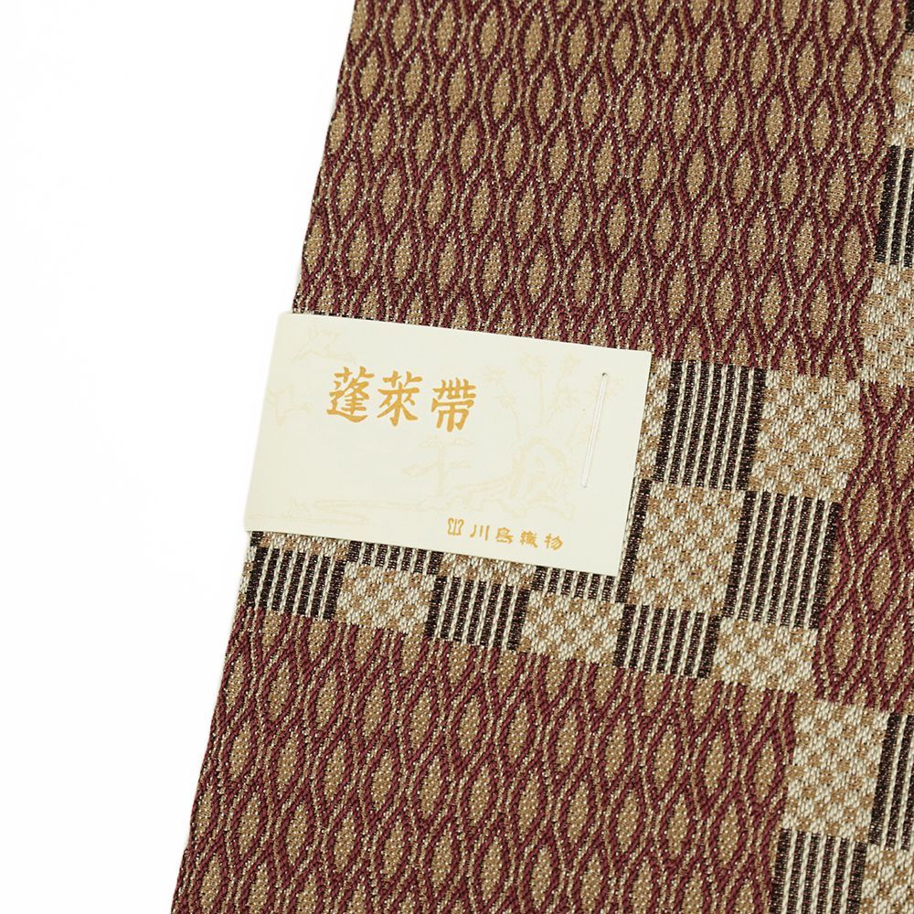 名古屋帯 川島織物 正絹 茶 市松 カジュアル 仕立て上がり 開き名古屋帯 No.i6-2403