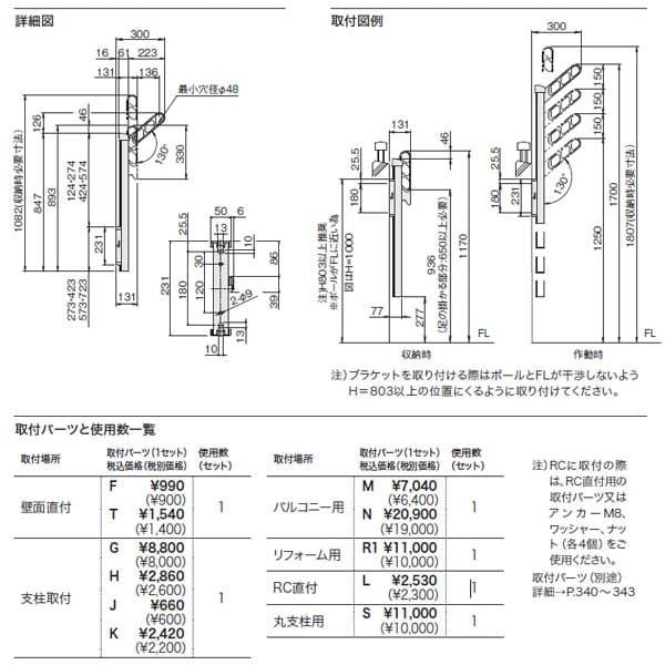 ・屋外物干の耐荷重に十分に耐えられる壁面及び支柱に取り付けてください。また、避難経路を確保できる場所に取り付けてください。