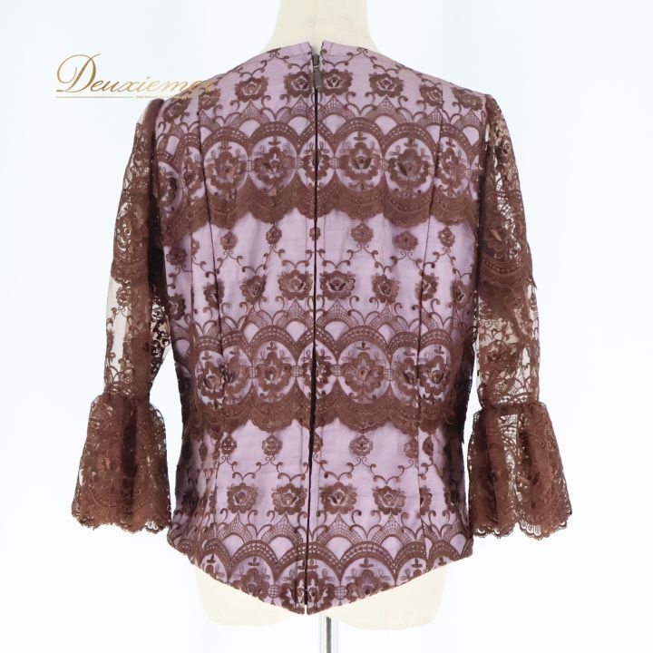 フラメンコ 衣装 トップス ブラウス 紫 茶色 レース フリル 感 お洒落 ダンス パーティ 発表会 パープル系 ブラウン系 エレガント 花柄 デザイン ファッション 女性用 上品 カジュアル