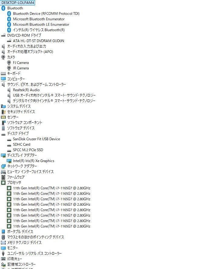 ・CPU :高性能インテル Core i7 プロセッサー 1165G7 プロセッサー@2.80GHz