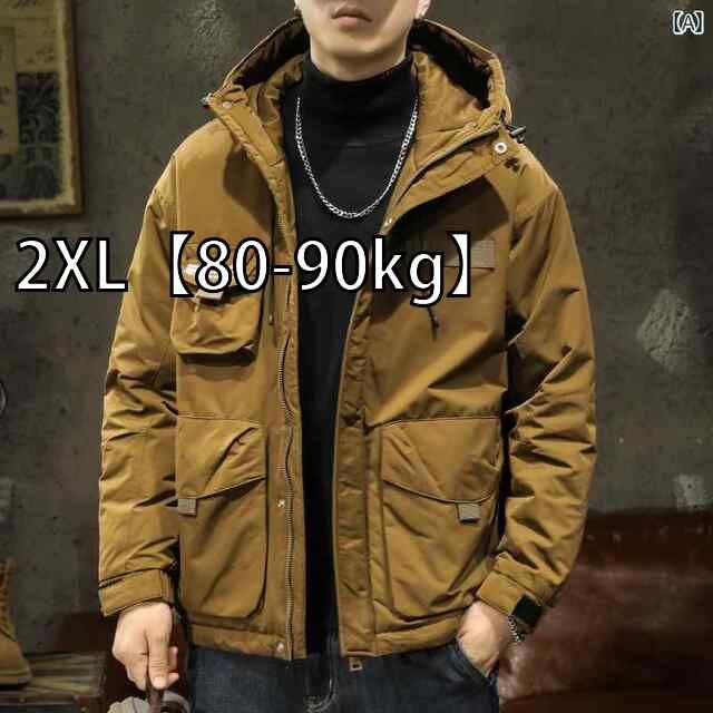 商品名:[2XL【80-90kg】]メンズ 男性用 ファッション オシャレ シンプル 大人 かっこいい ストリート ヒップホップ HipHop ホワイトダックダウン ジャケット 冬 ルーズ 耐寒 厚手 フード 付き ジャケット スタイル