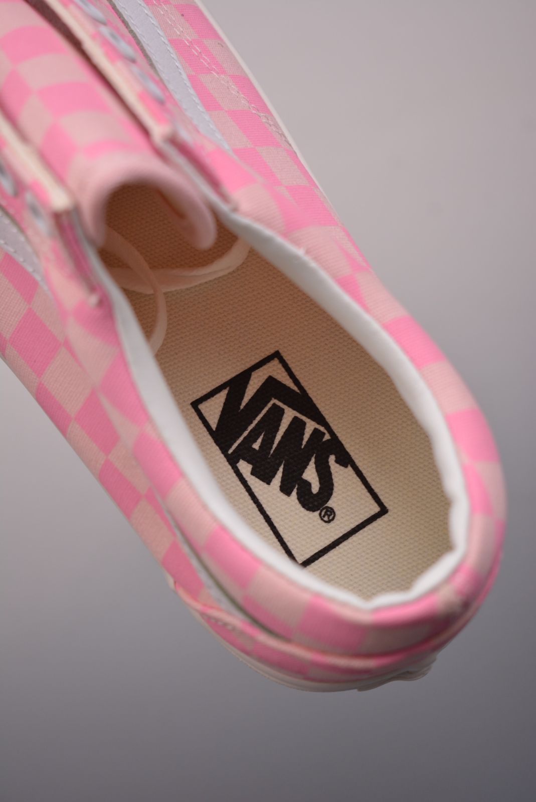 この Vans Old Skool は、可愛らしいピーチピンクのチェッカーボード柄が特徴的なレジャー キャンバス ヴァン化 シューズです。春の出街にぴったりのデザインで、ボリューム感のあるシュートップと、ヴァン化工法による丈夫なソールが魅力的です。