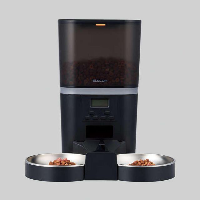 エレコム ELECOM 自動給餌器 中 小型犬用 猫用 6リットル 2皿 2匹 タイマー機能付 録音機能付 ブラック PET-AF 02 BK ペット用 ドライフード