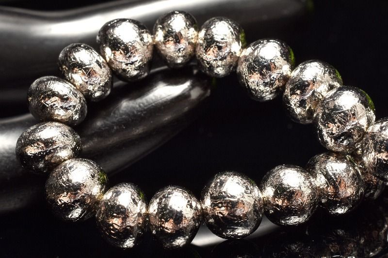 1点物 メテオライト アルタイ隕石 5-6.5 x 7.5 mm シルバーコーティング タンブル ボタン ブレスレット パワーストーン 天然石 _MA 9906