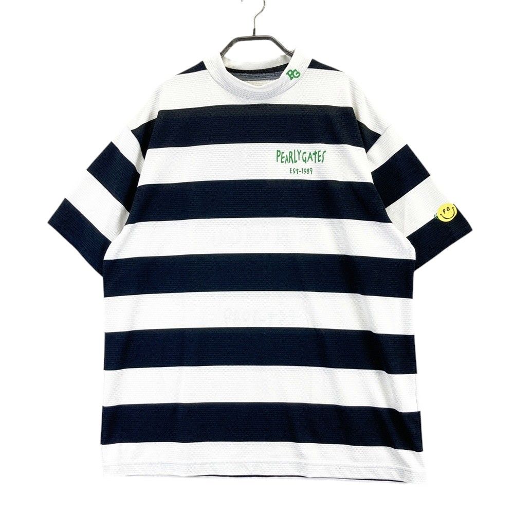 サイズ 6 PEARLY GATES パーリーゲイツ モデル ハイネック 半袖Tシャツ メッシュ ボーダー柄 ホワイト系 ゴルフウェア メンズ ストスト