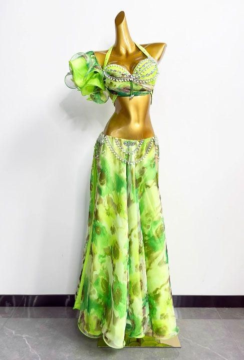 ベリーダンス衣装 トップスブラ スカート グリーン オーダーメイド