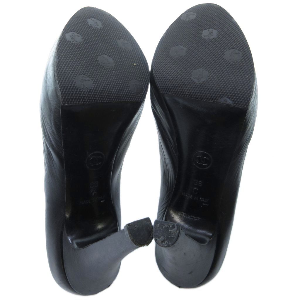 シャネル CHANEL レザー オープントゥ パンプス ハイヒール ココマーク 黒 ブラック 約24 cm IBO 81